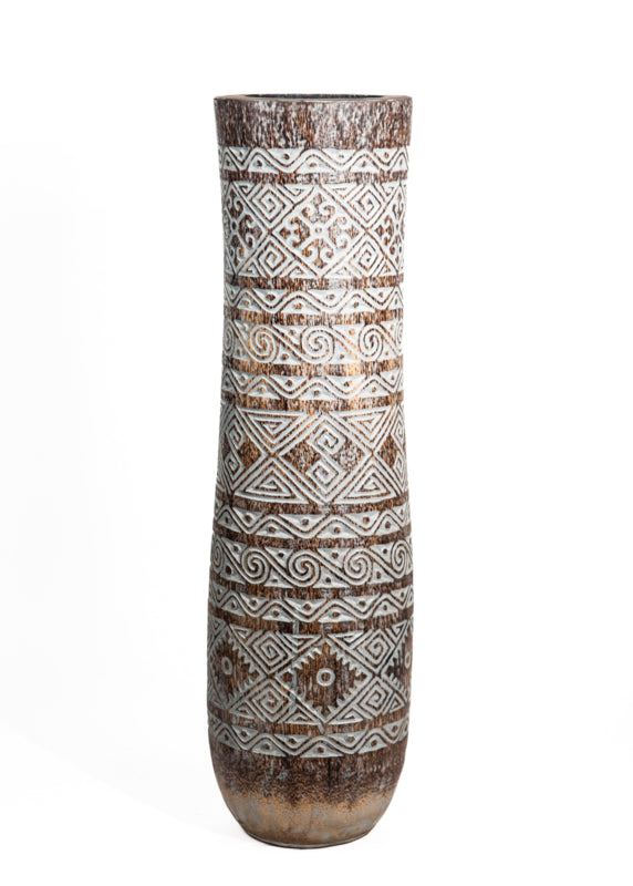 UNIEK! Deze gave XL Timor vaas van 100cm hoog uit Bali. Handgesneden uit een enkele palmboom in timor motief met een licht grijze tint. Echt een prachtig decoratief object voor Bali en Ibiza style interieur of exterieur!