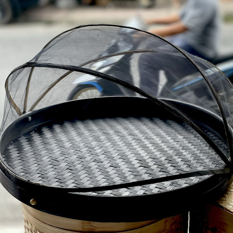 Een prachtig bamboe vliegenmand dienblad in de kleur zwart. Het vliegenmand/dienblad heeft een plat model van wel Ø50cm. Een flinke vliegenmand dus!