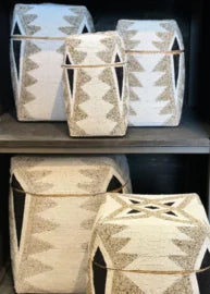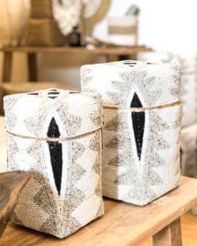 Prachtige bamboe offermanden hoog model XXL afgewerkt met kraaltjes in een creme/wit/zwart patroon in 5 verschillende maten!